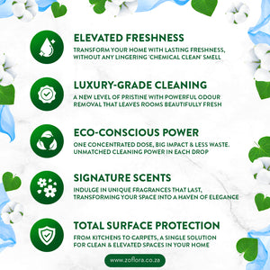Zoflora’s patented malodour technology ensures your home stays fresh and clean for longer. 1x 500ml makes 20l