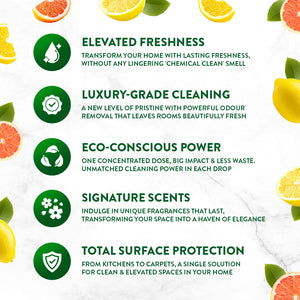 • Zoflora Multipurpose Cleaner Lemon Zing 800ml:  Bursting with vibrant citrus freshness, this powerful formula eliminates 99.9% of bacteria and viruses while effortlessly removing grease, grime, and everyday mess. Perfect for countertops and all around your home, it leaves a lasting, zesty fragrance that energizes every space.