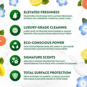 Unleash a new level of clean with the Zoflora, two powerhouse concentrates that kill 99.9% of bacteria and viruses while tackling dirt, grease, and germs with ease. Each fragrance transforms your space with vibrant, long-lasting scents, keeping your home fresh and inviting throughout the day.