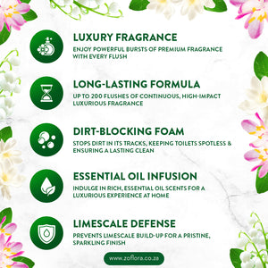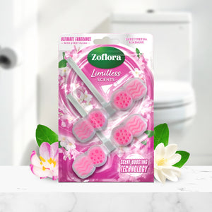 Transform your bathroom with the enchanting Sweet Freesia & Jasmine Limitless Scents Rim Block! Immerse yourself in the uplifting aroma of Sweet Freesia, invigorating bergamot top notes, and a heart of Jasmine.