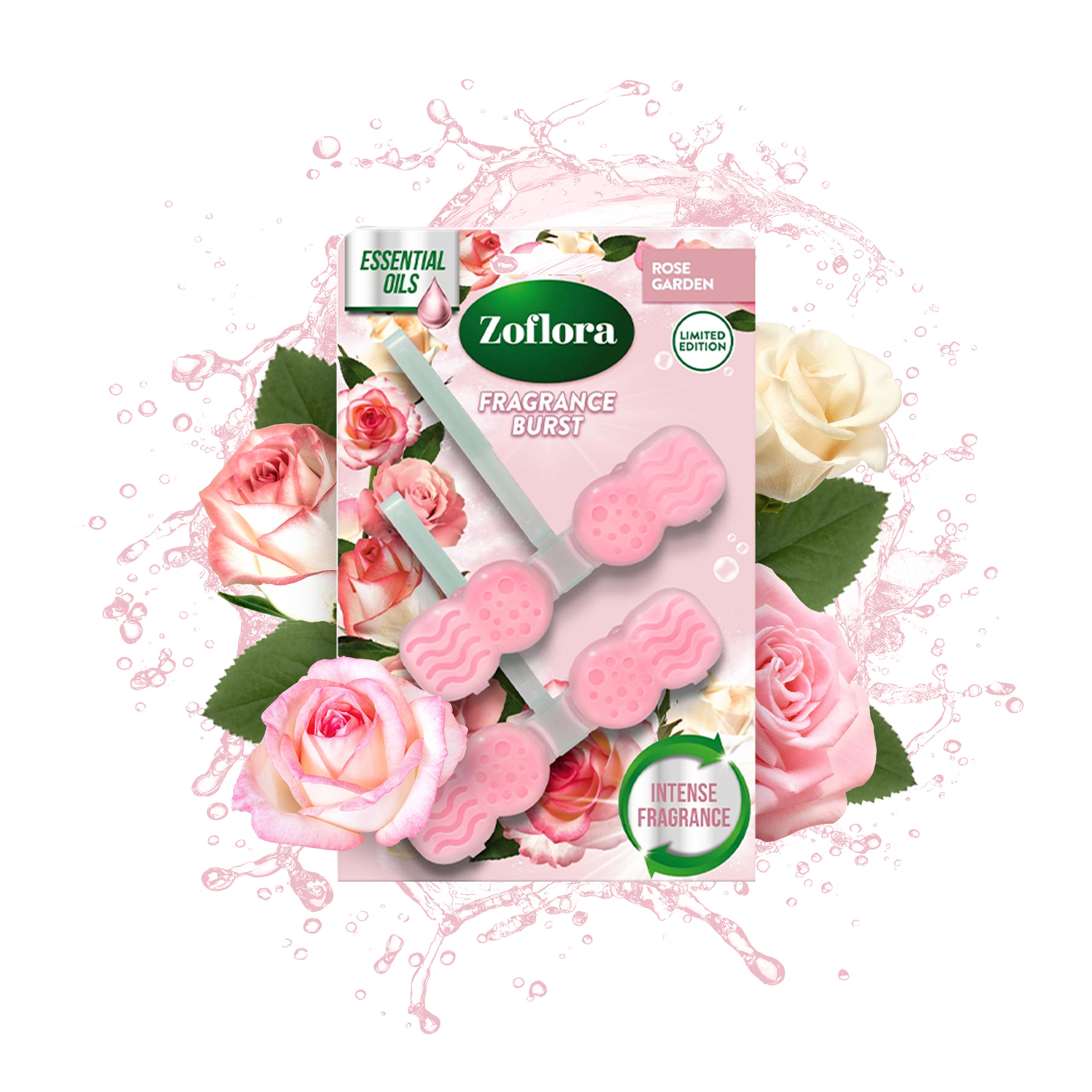Experience the beauty of a fresh rose garden with Zoflora Rose Garden Rim Blocks—where classic fragrance meets everyday cleanliness.