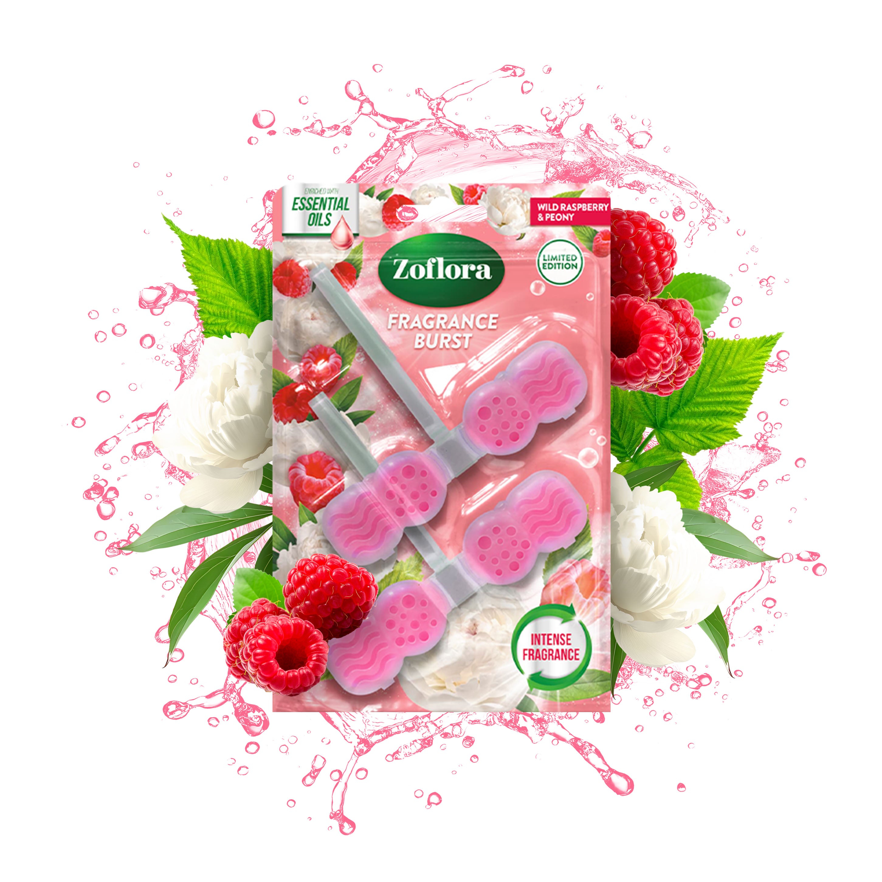 Transform your bathroom routine with Zoflora Wild Raspberry & Peony Rim Blocks—where powerful freshness meets irresistible fragrance.