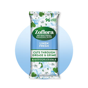 Zoflora Biodegradable Antibacterial Multi-Surface Cleaning Wipes are a convenient format designed for quick, effective cleaning around your home or, on the go. Bursting with fragrance, each biodegradable wipe is made from 100% plant-based fibres from responsibly managed sources.